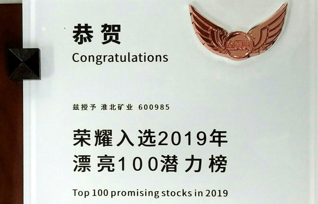 日前,淮北礦業在2019首屆中國上市公司高質量發展論壇暨第二屆中國證券分析師“金翼獎”頒獎典禮上榮譽入選2019“A股漂亮100”榜單。