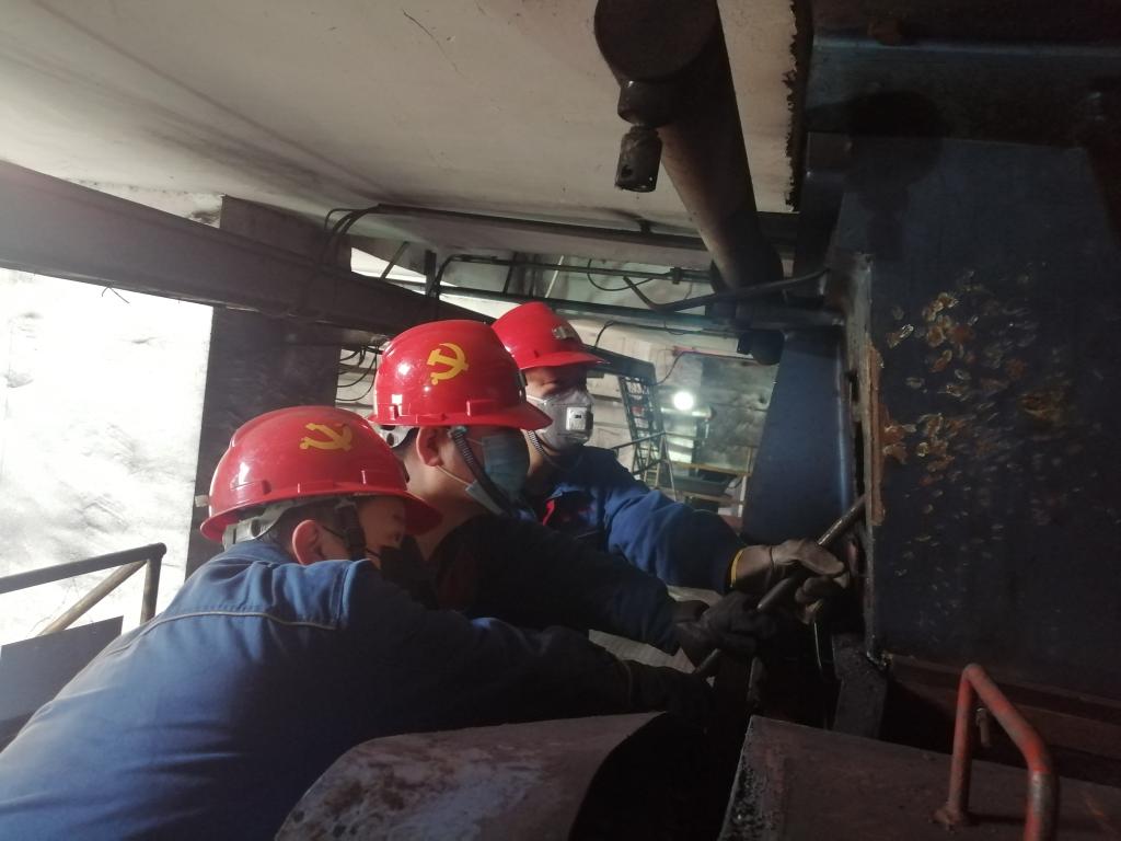 這一幕是渦北選煤廠生產(chǎn)班班長正在安排一項“苦臟累”的突擊任務。渦北選煤廠有六個萬噸級原煤倉,24落煤倉眼,由于春節(jié)長假,潮濕的原煤在水與泥的作用下,在倉壁上面板結硬化形成一個“假底”,高高的懸空蓬死在原煤倉內(nèi),猶如筑城的夯土,倉內(nèi)空氣炮也奈何不了它們。眾所周知,捅倉這活是又臟又累,而且有時候忙了一天都捅不下來一個倉眼,上萬噸原煤就在倉里,卻無法正常進入生產(chǎn)系統(tǒng),生產(chǎn)處理量無法穩(wěn)定,質(zhì)量控制難以保證,生產(chǎn)能耗不斷增加。當天,三名黨員與蓬倉眼進行了一場頑強的搏斗,最終把蓬倉貫通,為原煤穩(wěn)定洗選創(chuàng)造了重要條件。