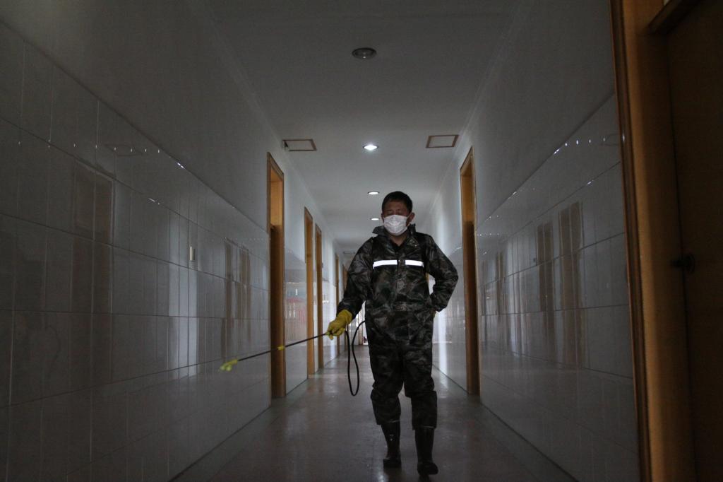 2月4日下午4:30,在皖北康復醫(yī)院南區(qū)大門口,筆者見到了“全副武裝”的康復治療中心副主任金濤,來不及多問一句,金濤便帶著消殺物品上了“戰(zhàn)場”。