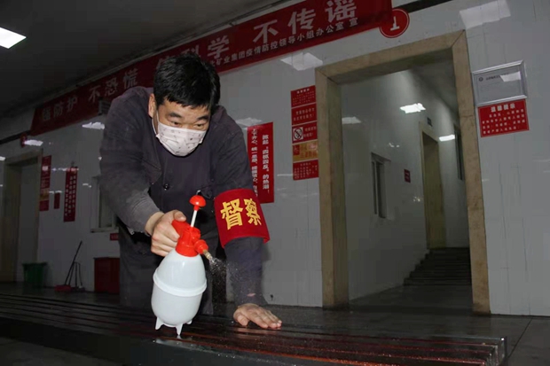 該礦物業(yè)科衛(wèi)生隊黨員劉洋,背著噴霧器每4小時一次對辦公樓走廊、職工宿舍、衛(wèi)生間及所屬崗位進行消毒,對食堂等關鍵重點場所每日不少于3次消毒。(王亮 陳更)