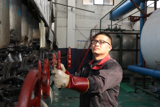 點火、供氣、化驗、供水、巡查……一套程序走下來,鍋爐房職工周峰、曹艷忙活了小半天。