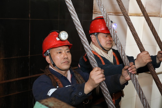 “日常檢修包括罐耳、驗繩、罐道等一系列檢修項目,上午檢修新副井,下午檢修老副井,和平常一個樣。”宋清杰說著話,忙碌的雙手并未停下來,“假期我們總共4個人上班,除了對三個井筒進行檢修外,還要負責對其他的地方進行巡查維護。”
