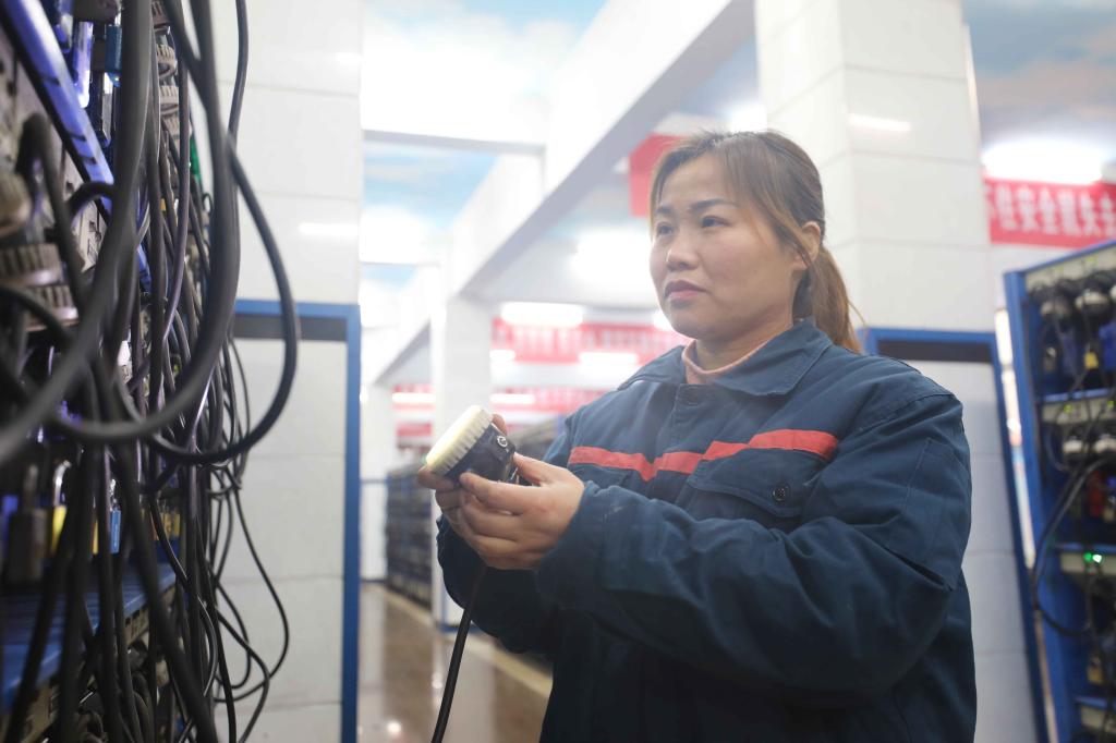 “這顆螺絲松動了,你抓緊安排處理。”安全員朱建成把現場發現的問題反饋到班長王磐。