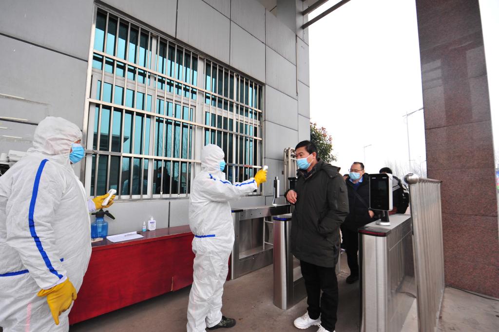 “師傅請您對準閘機面部識別屏幕,系統會自動識別您的身份信息及行程軌跡。”“師傅,閘機顯示您體溫略高,請您在門外稍等片刻重新測量。”