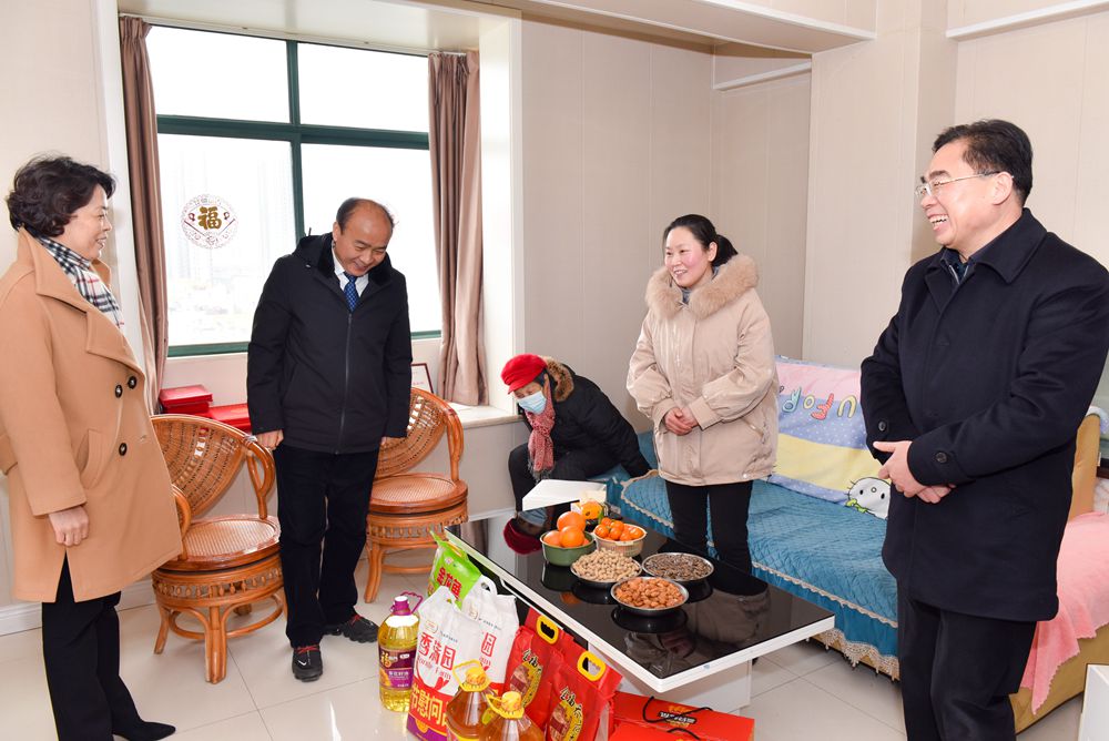 1月27日上午,受市委副書記、市長覃衛(wèi)國委托,市人大常委會副主任張保成、市政協(xié)副主席李公峰在市文明辦負責(zé)人陪同下來到淮北礦業(yè)集團臨渙選煤廠職工、安徽省道德模范郭清玲家中,噓寒問暖,節(jié)日慰問,送來了黨和政府的親切關(guān)懷,并致以誠摯的新春問候。