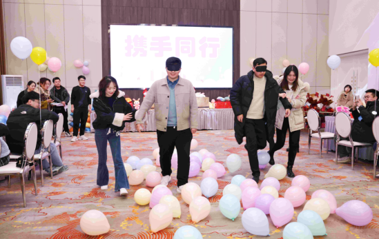 參與此次活動的20名單身男青年來自工程處、工程建設(shè)公司、臨渙礦等單位近年來新入職高校畢業(yè)生,18名單身女青年來自淮北市教育、金融、醫(yī)療系統(tǒng)單位。活動設(shè)置了“穿越呼啦圈”“搶紙杯”“攜手同行”“踩氣球”“報(bào)紙拔河”等年輕人喜聞樂見的互動小游戲,以小組為單位增添競技性,讓每個人的參與熱情持續(xù)高漲。在現(xiàn)場主持人的引導(dǎo)下,游戲“熱身”產(chǎn)生了很好的效果,男女青年從陌生到熟絡(luò),迅速打成一片,紛紛敞開心扉,大膽展示自己、表達(dá)想法,整個活動氛圍輕松愉悅,充滿了歡聲笑語。