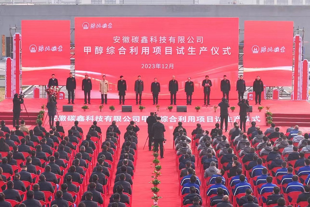 (2023年12月28日,碳鑫科技公司甲醇綜合利用項目試生產(chǎn)儀式舉行。)