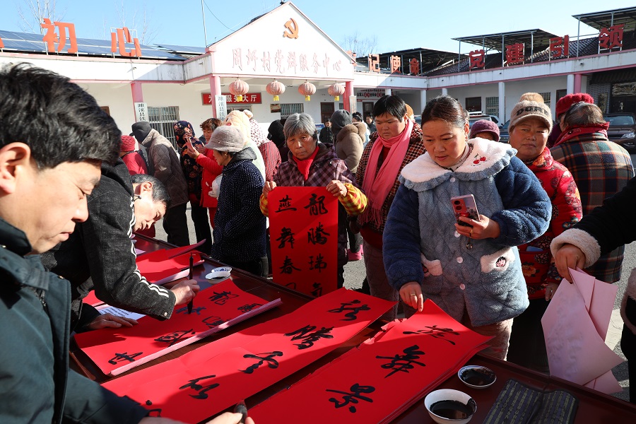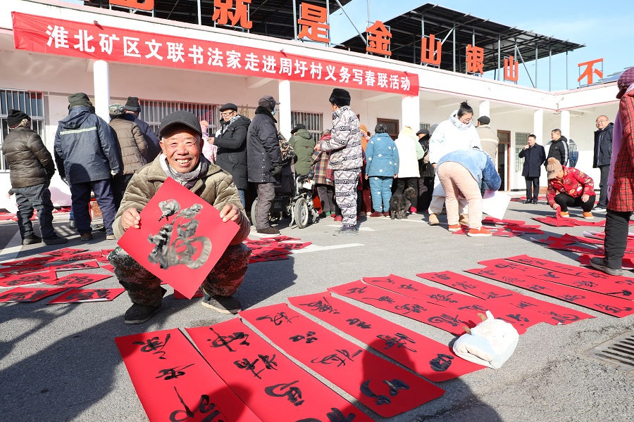 1月23日,淮北礦業集團工會組織礦區書法家深入定點幫扶鄉村——濉溪縣鐵佛鎮周圩村,開啟新年義務書贈春聯系列活動,現場揮毫潑墨“迎新春、話小康、助振興”,為村民送上新春祝福和美好祝愿,為建設宜居宜業和美鄉村,加快鄉村振興匯聚精神力量。