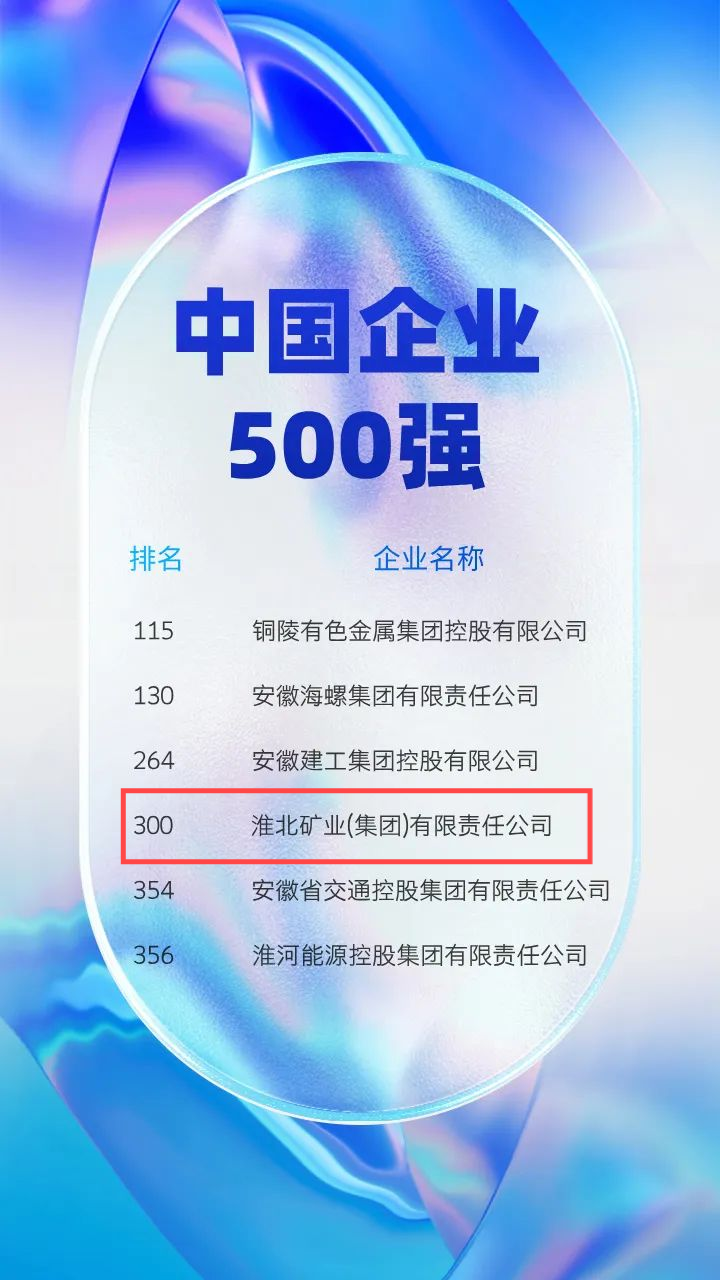 淮北礦業(yè)集團(tuán)進(jìn)入“2024中國企業(yè)500強(qiáng)”榜單!