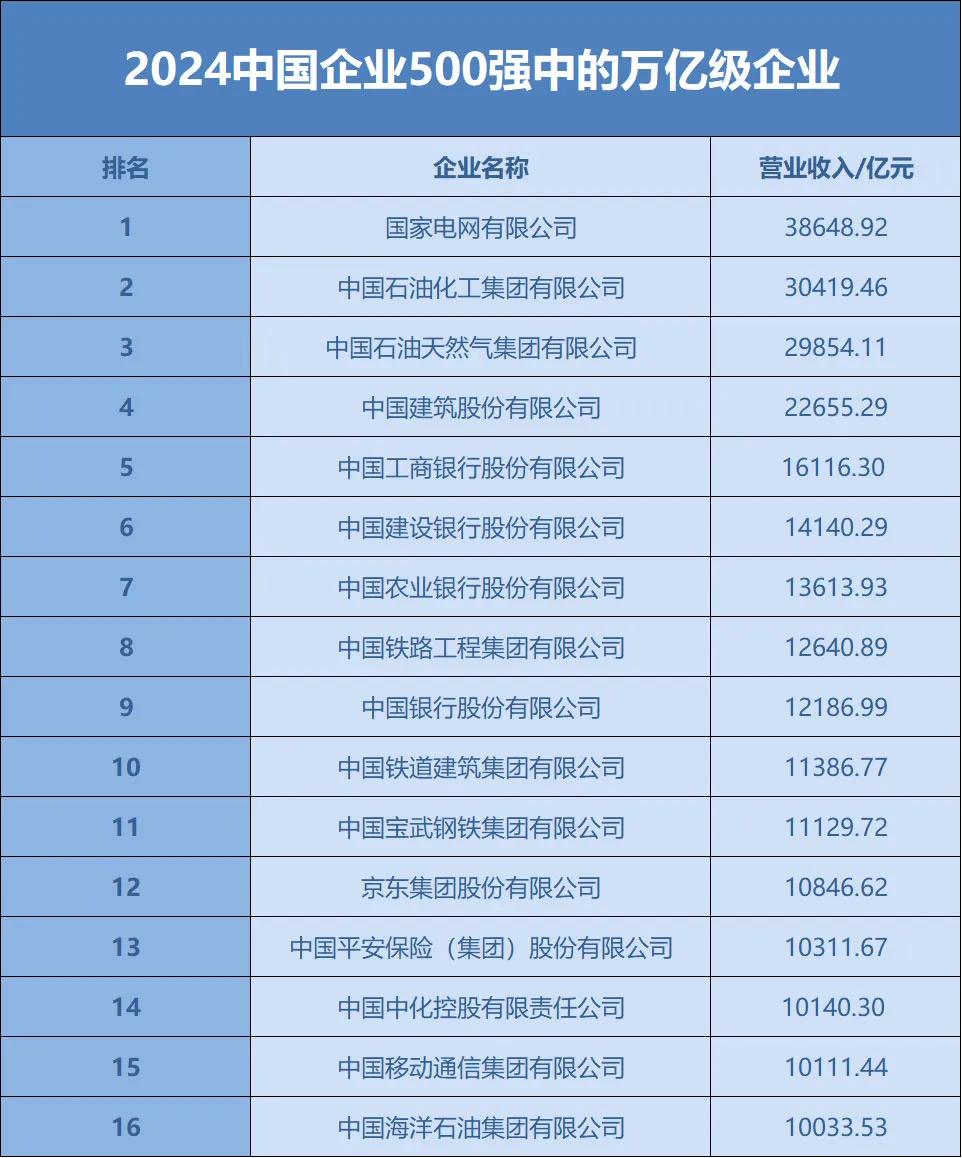 2024中國企業(yè)500強(qiáng)中,營業(yè)收入超過1000億元的企業(yè)數(shù)量為253家,占比超過50%;有16家企業(yè)營業(yè)收入超過了1萬億元。