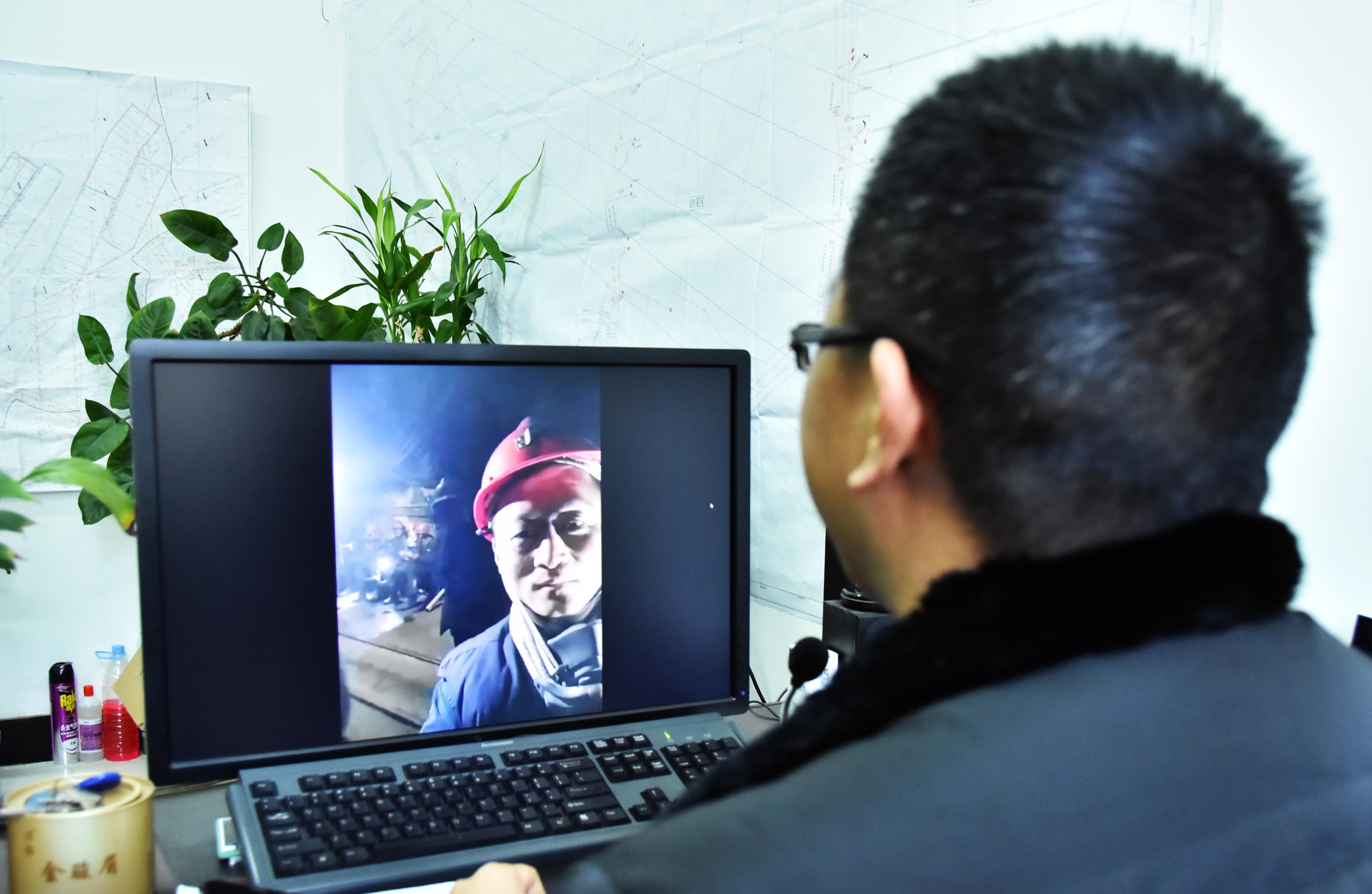 淮北礦業(yè)集團管理人員在地面通過單兵裝備與井下工作人員視頻連線